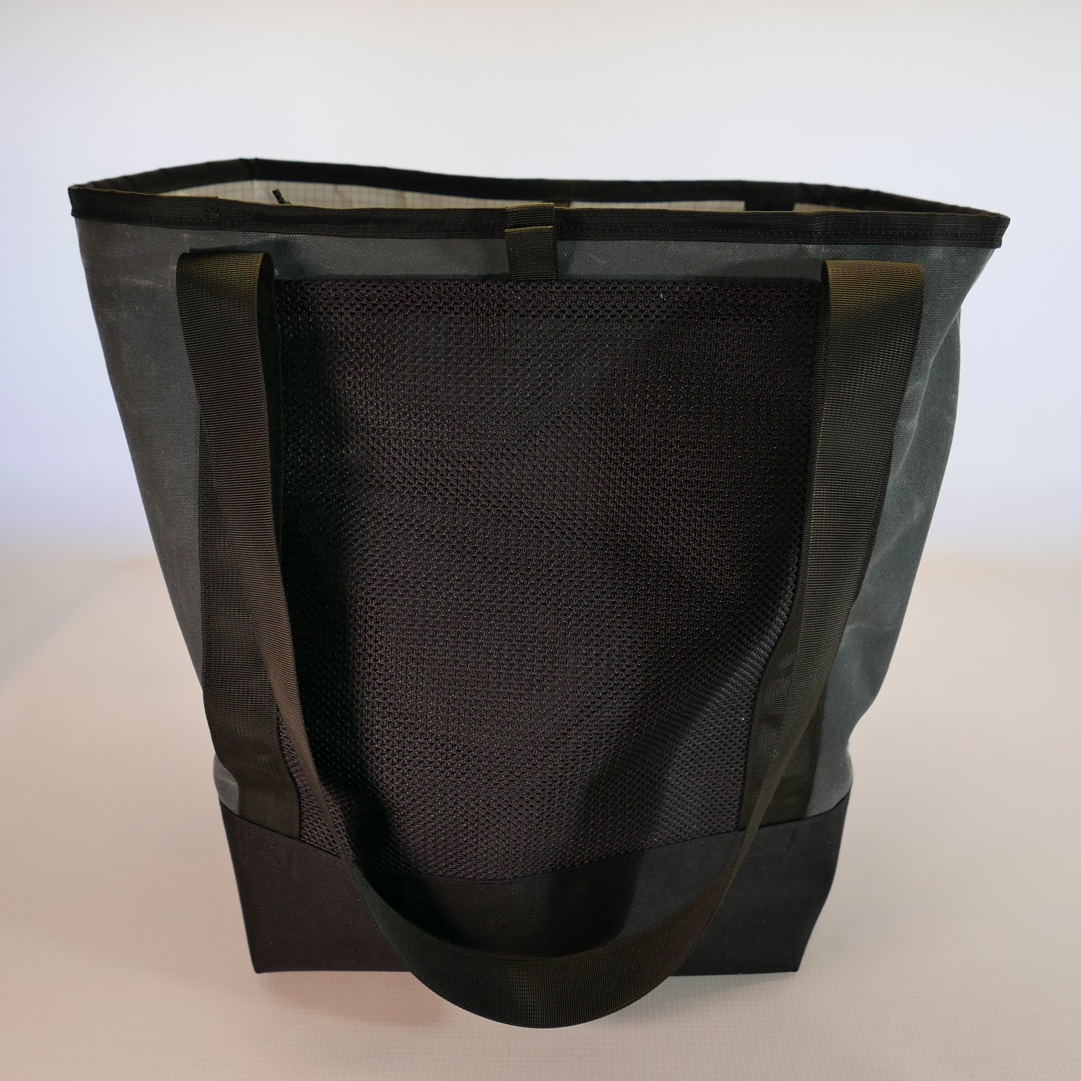 mid blue #10 waxed canvas/reflective shock cord w/cord lock /black ballistic bottom /olive 2-way stretch/black matte wp #5 zip